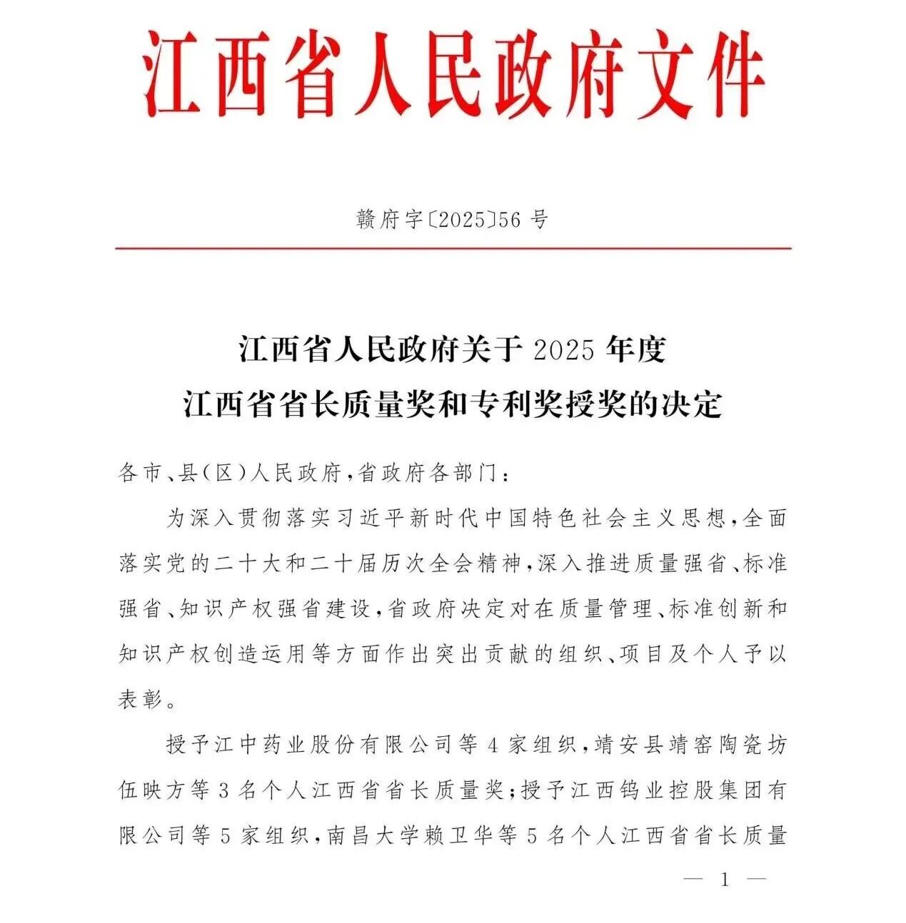 江西建科参编技术标准荣获江西省省长质量奖和专利奖