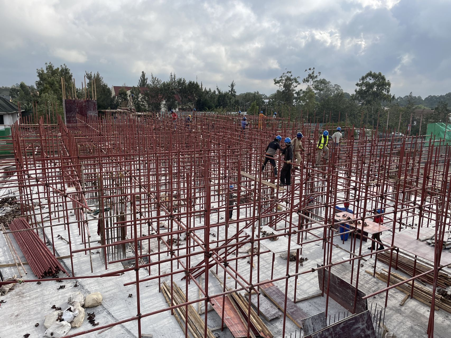 在埃塞俄比亚,奥罗姆国际银行总部大楼项目现场一派繁忙景象,这座地下5层,地上30层的122米高楼,已顺利完成地下室及地上5层结构施工,项目部全体员工一刻不停歇,全力推进项目建设,争取按时完成该阶段施工任务。