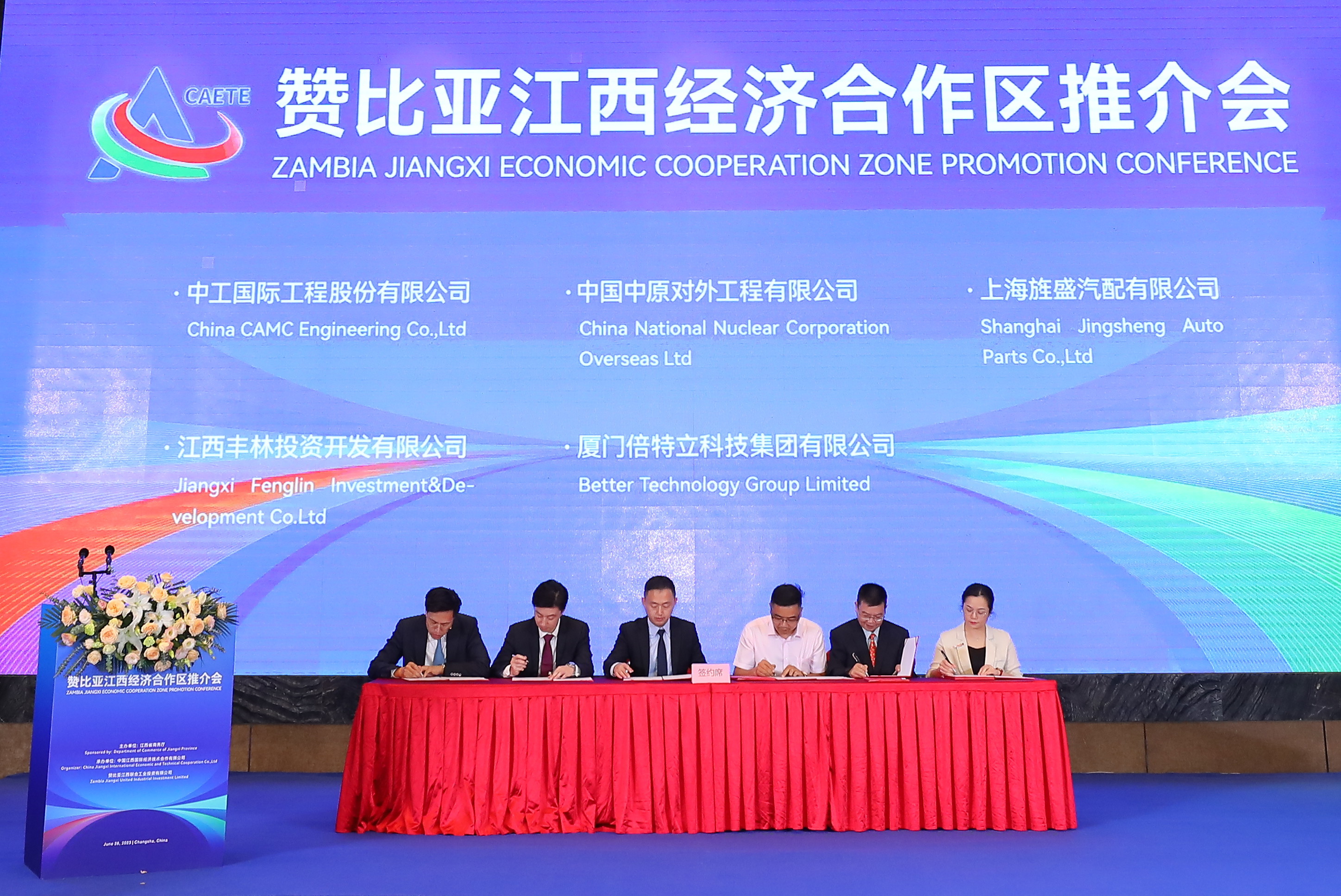 6月28日下午,由江西省商务厅主办,公司与江西省对外投资合作企业协会联合承办的赞比亚江西经济合作区推介会在第三届中非经贸博览会期间成功举办。江西省政府副省长夏文勇、赞比亚商贸工部部长穆伦加出席会议并致辞。江西省政府副秘书长熊科平、江西省外办主任范勇、商务部西亚非洲司副司长王东、赞比亚国家发展联合党副总书记伊门达、内阁副秘书长西阿卡灵格、商贸工部常务秘书长穆隆戈提、议会常务秘书长坎宛比等出席会议,江西省商务厅副厅长陈长生主持会议,公司董事长张建安出席会议并作推介发言。国家级行业商协会领导,央企和国家级境外经贸合作区代表,以及相关企业代表共160余人参加活动。