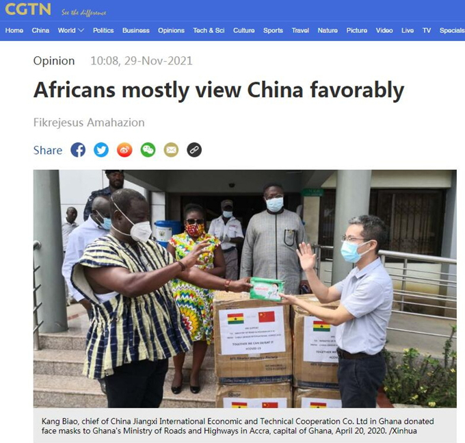 中国国际电视台(CGTN)发表《非洲人大多对中国持好感》的英文通讯稿,文章指出,在当前新冠肺炎疫情中,中方的作用不可忽视,中方向非洲提供多批医疗资源和疫苗,并派遣医疗队,帮助当地建立和加强抗击新冠病毒的能力。文中肯定了公司向加纳道路部捐赠防疫物资。