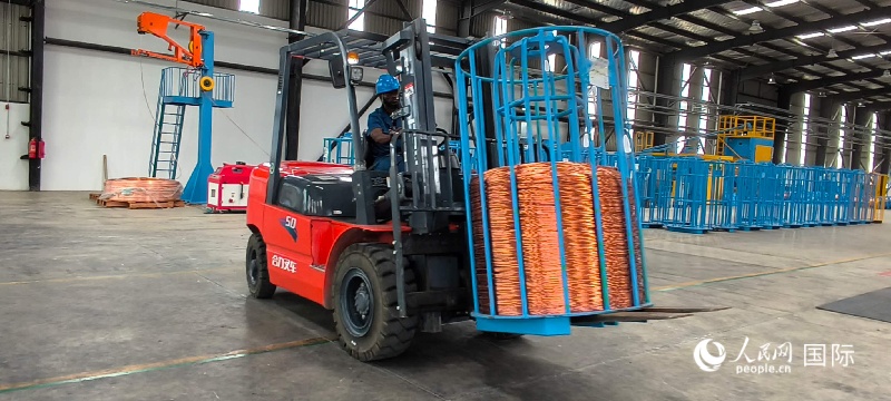 经济合作区的车间内,叉车正在忙碌。人民网记者 黄培昭摄